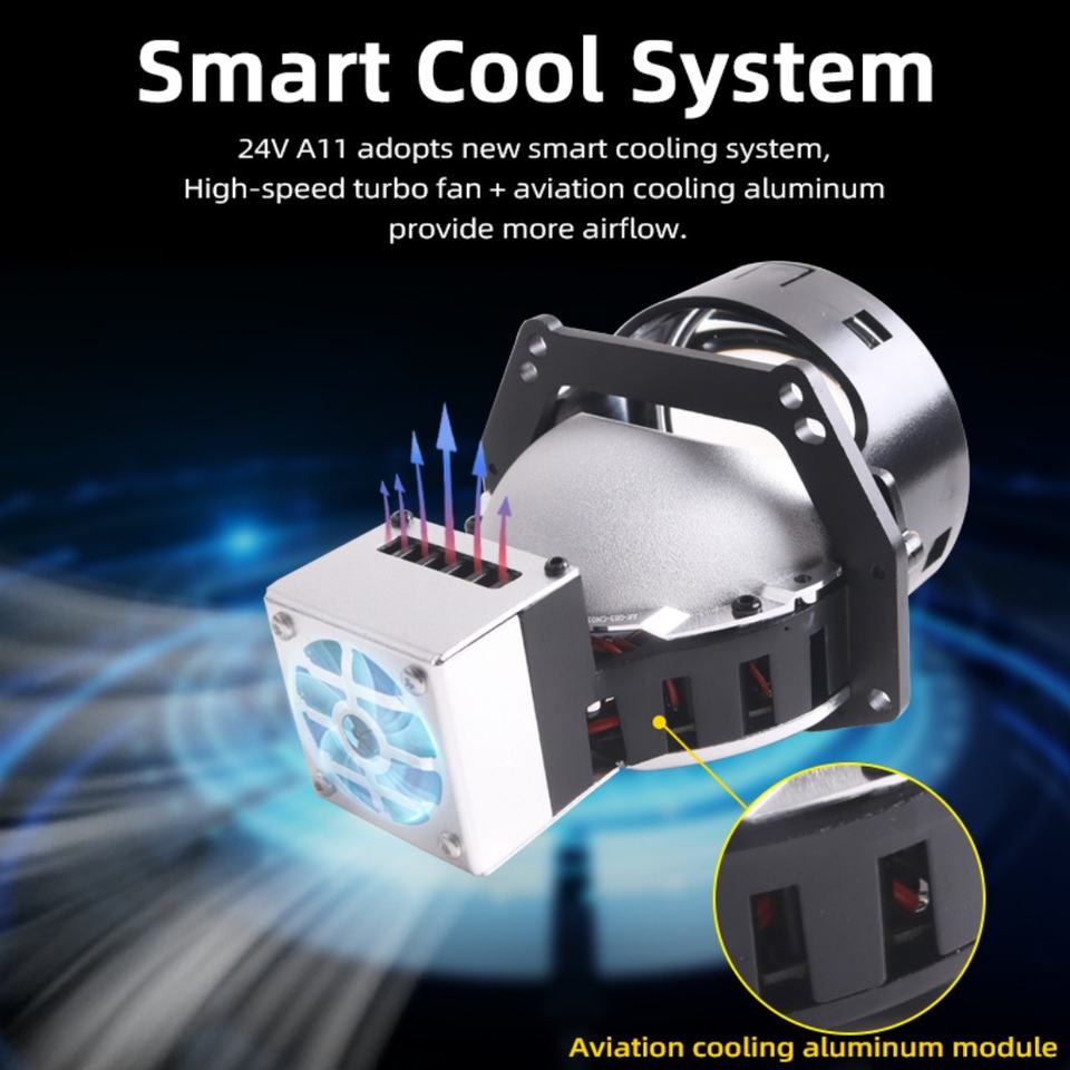 Lente de Proyector Bi-LED de Alta Calidad, 24V A11, 3 Pulgadas, 64W, 6000K, Brillante, para Autos, Camiones, Lámparas para Autos, Accesorios para Faros Delanteros Bi-LED