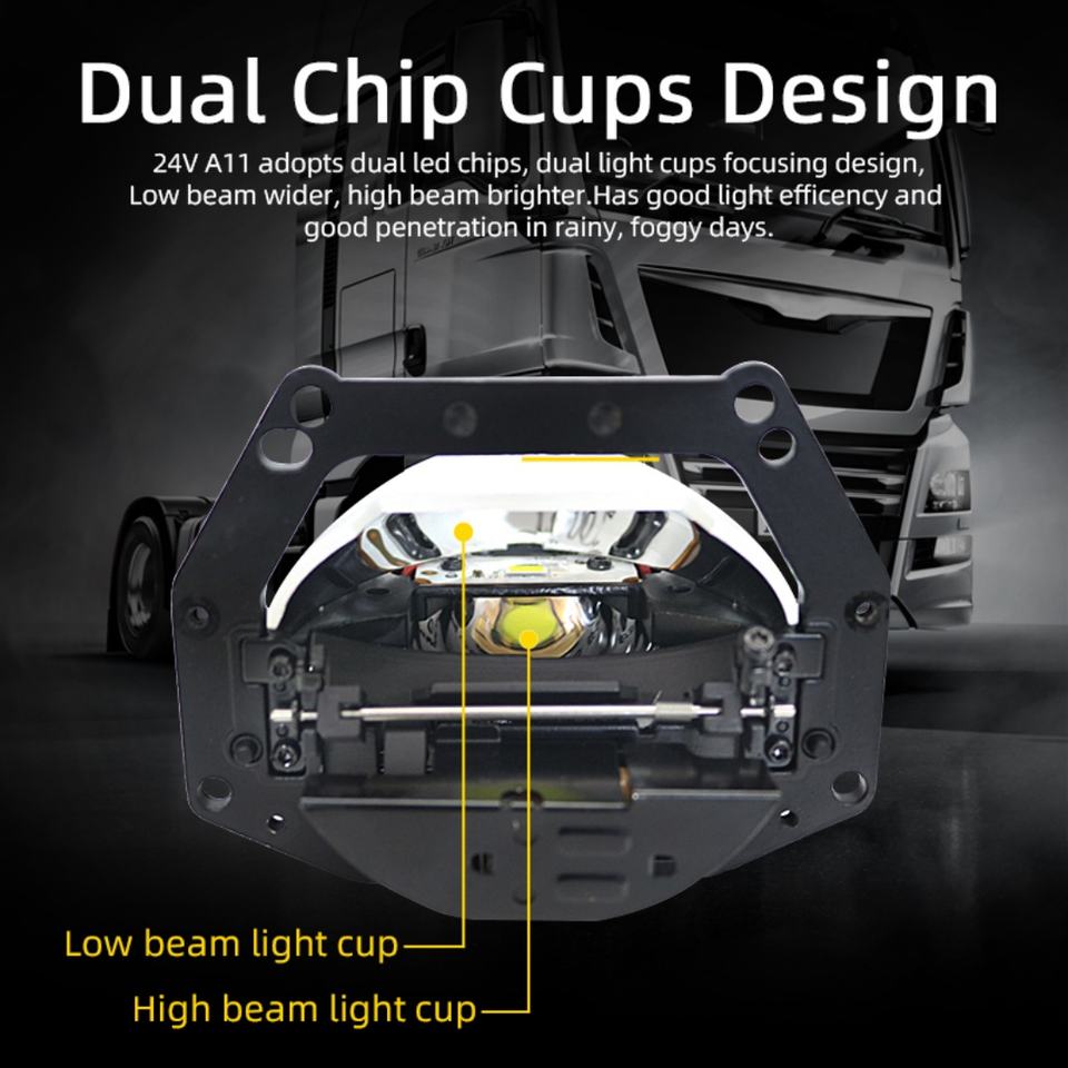 Lente de Proyector Bi-LED de Alta Calidad 24V A11 de 3 Pulgadas 64W 6000K, Faro LED Súper Brillante para Automóvil, Accesorios para Camiones, Lámparas para Auto