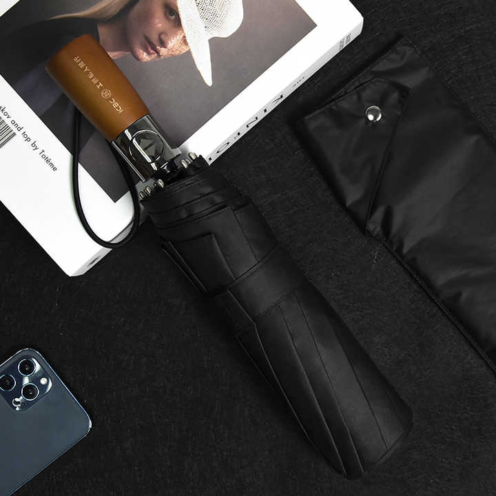 Paraguas Plegable de Alta Calidad de 25 Pulgadas con 10 Varillas, Mango de Madera, Resistente al Viento, Personalizado, Impermeable, Diseño Clásico, con Logotipo