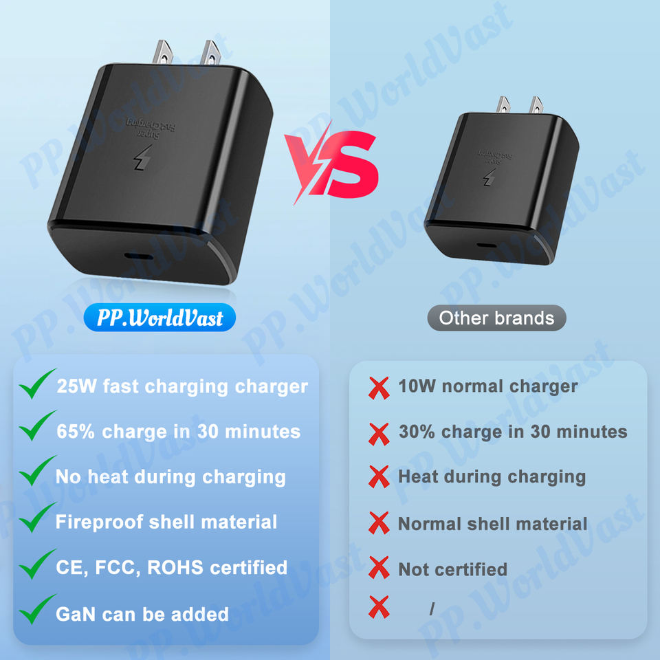 Cargador Móvil Tipo C de Alta Calidad con Carga Súper Rápida de 25 W, Cargador PD para EE. UU. para Samsung Galaxy S21 S22, Adaptador y Cargador