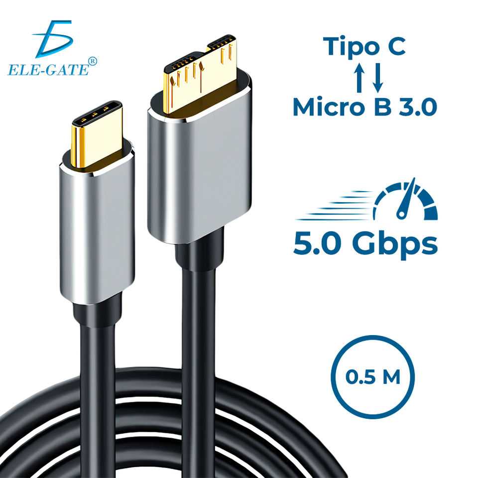 Cable USB Tipo-C a Micro-B de Alta Calidad, 3.0, 1M, Chapado en Oro, Carga Rápida 3A, Conectores Metálicos de 0.5M