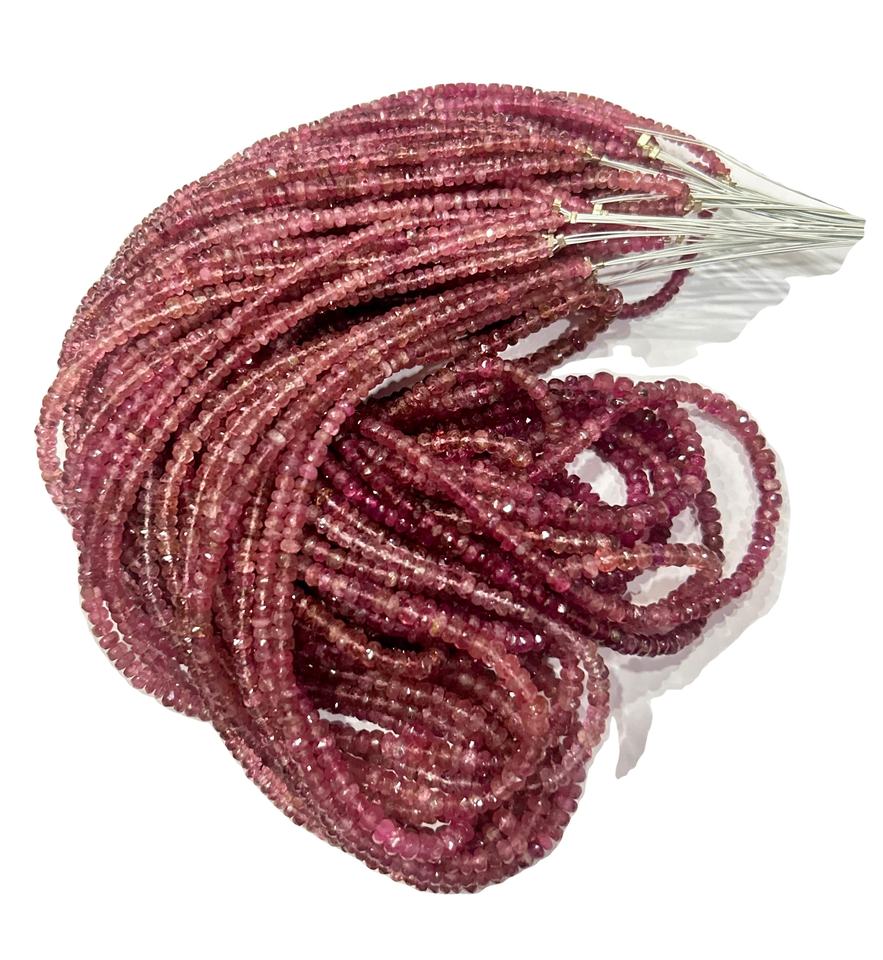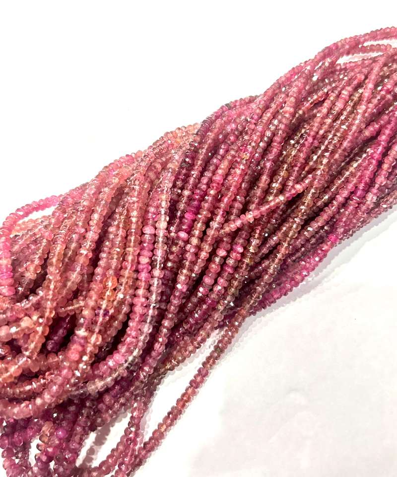 Cuentas Rondelle facetadas de 3-4mm de alta calidad, turmalina Rosa Natural, hebra larga de 16 pulgadas, buena para la fabricación de joyas