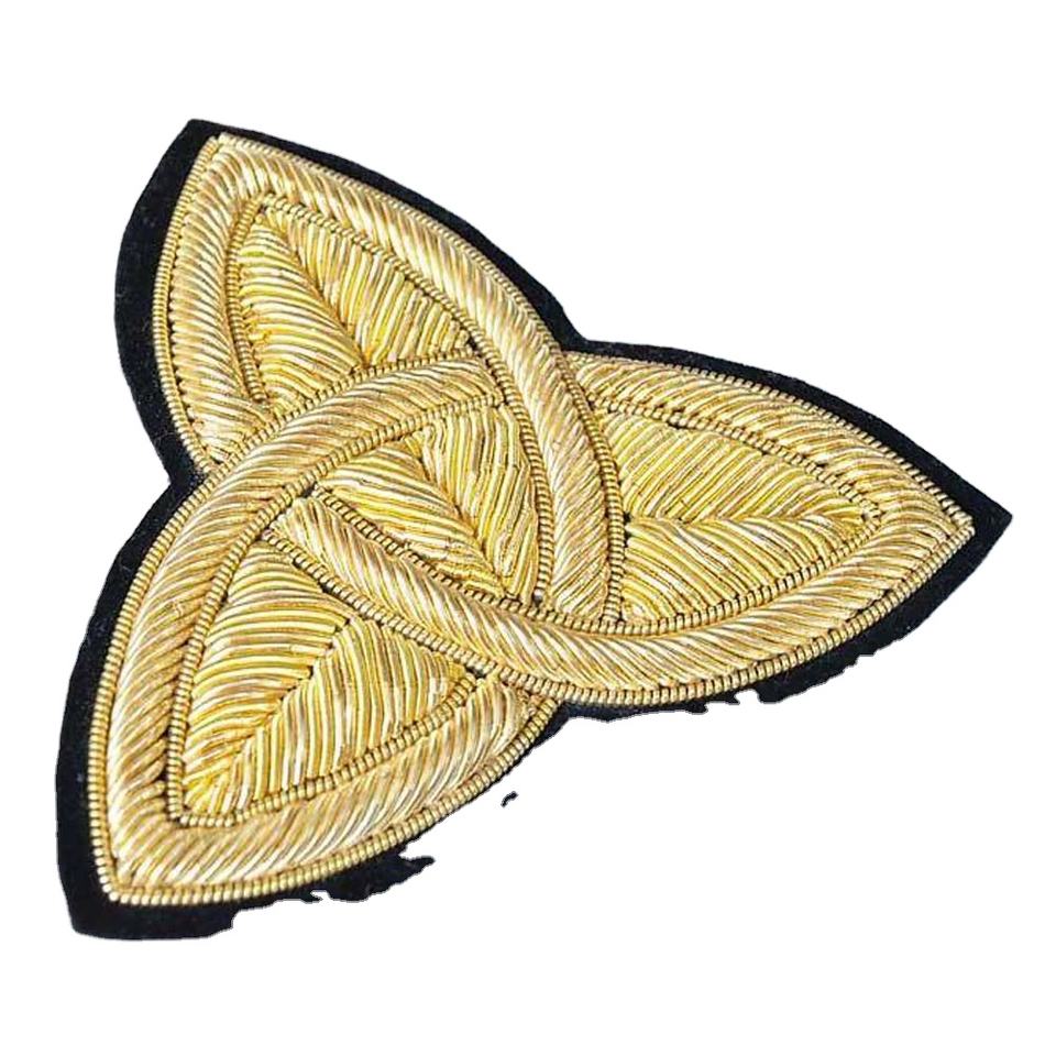 Insignias cosidas Trinity de oro de 3 pulgadas de alta calidad, 2 parches de lingotes bordados a mano con decoración de encaje, Material de Metal