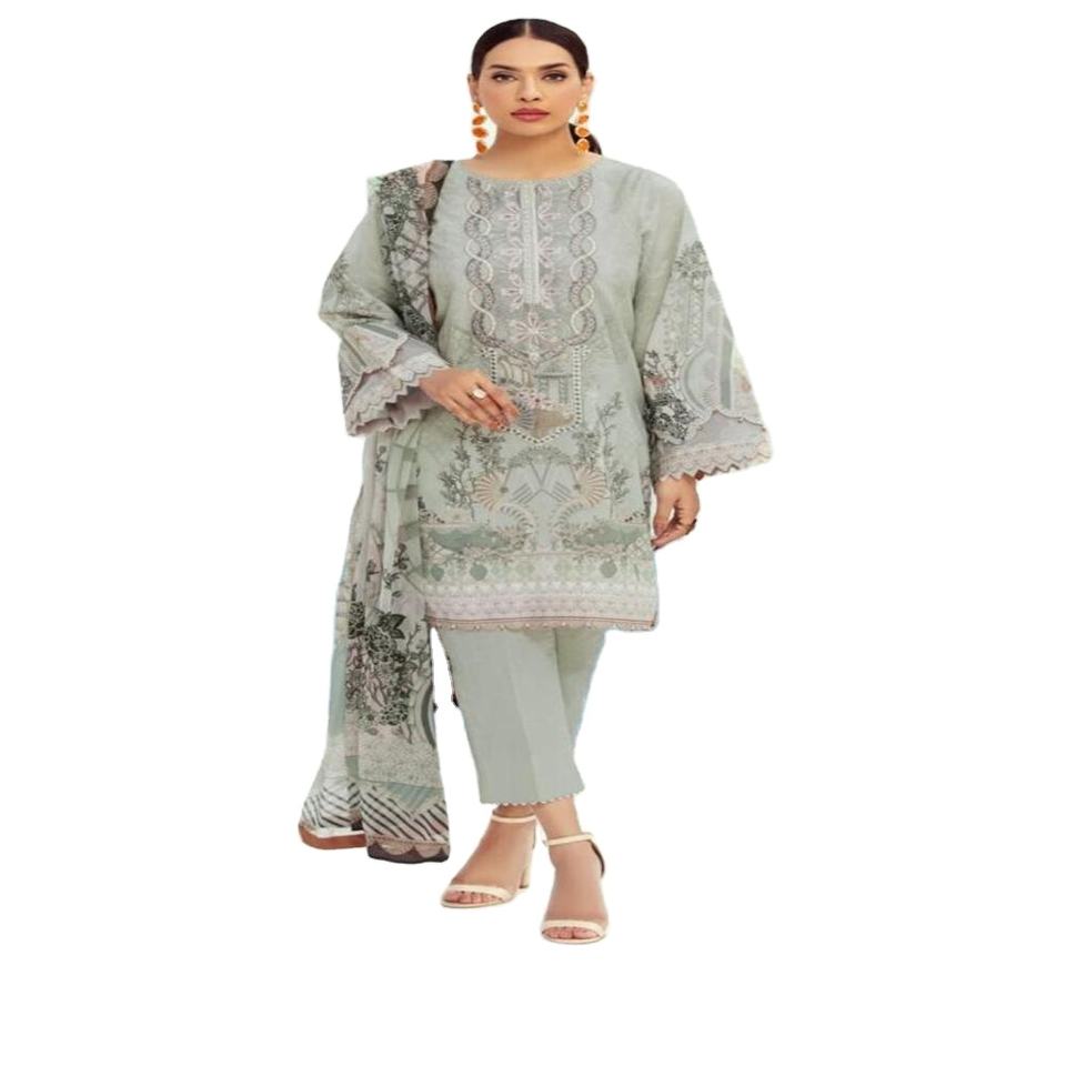 Hermoso y elegante copia maestra de alta calidad de algodón de 3 piezas totalmente bordado señoras trajes de césped vestido de novia indio paquistaní