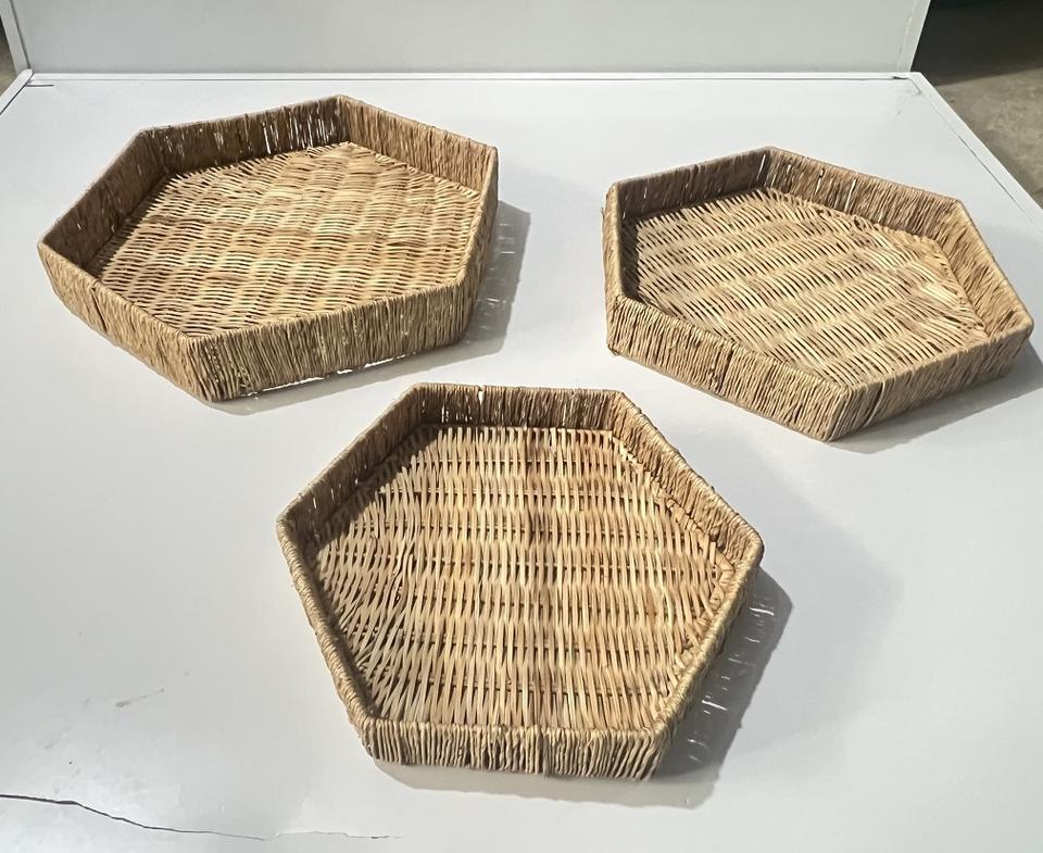 Juego de 3 piezas de alta calidad, bandeja para servir de ratán Octágono, bandeja decorativa Bohemia con bonito estilo hecho en Vietnam, estilo granja