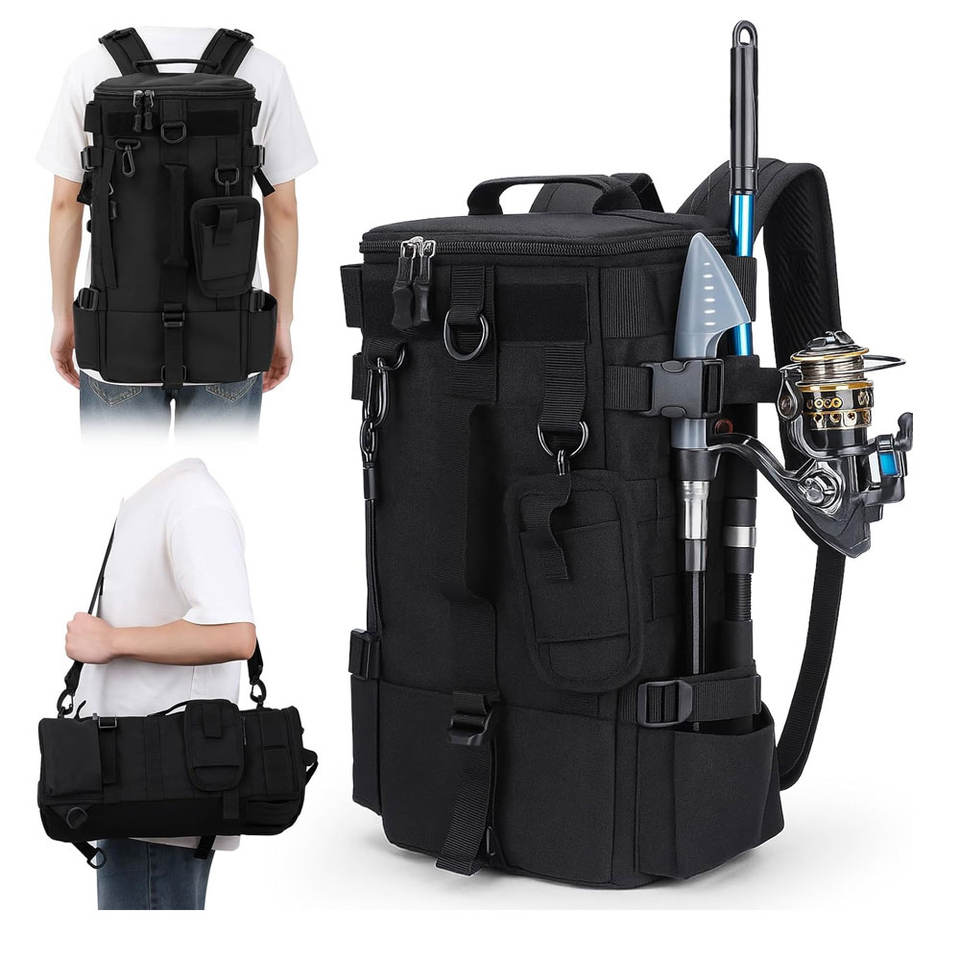 Mochila de Pesca Unisex de Alta Calidad, 30L, Poliéster, Doble Capa, Impermeable, Duradera, con Porta Cañas de Pescar