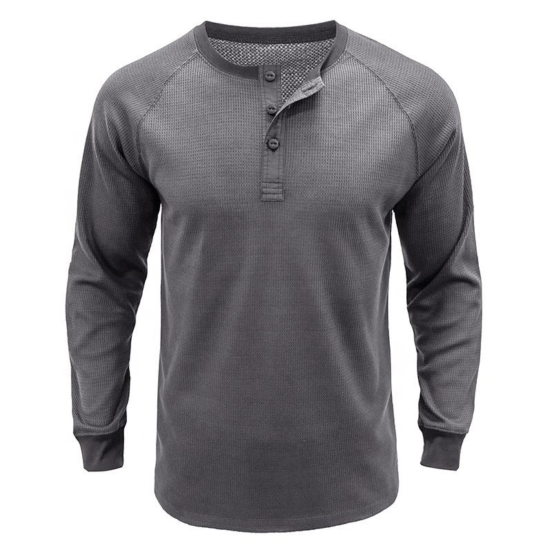 Alta calidad 360gsm poliéster rayón mezcla esencial botón manga larga Camiseta para hombres fábrica al por mayor impresión de logotipo personalizado