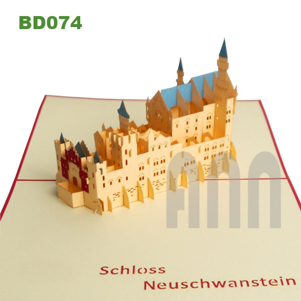 Hecho a mano 3D Pop-Up Neuschwanstein Castillo Edificio Papel de alta calidad Paisaje Boda Cumpleaños Decoraciones Tarjetas de felicitación