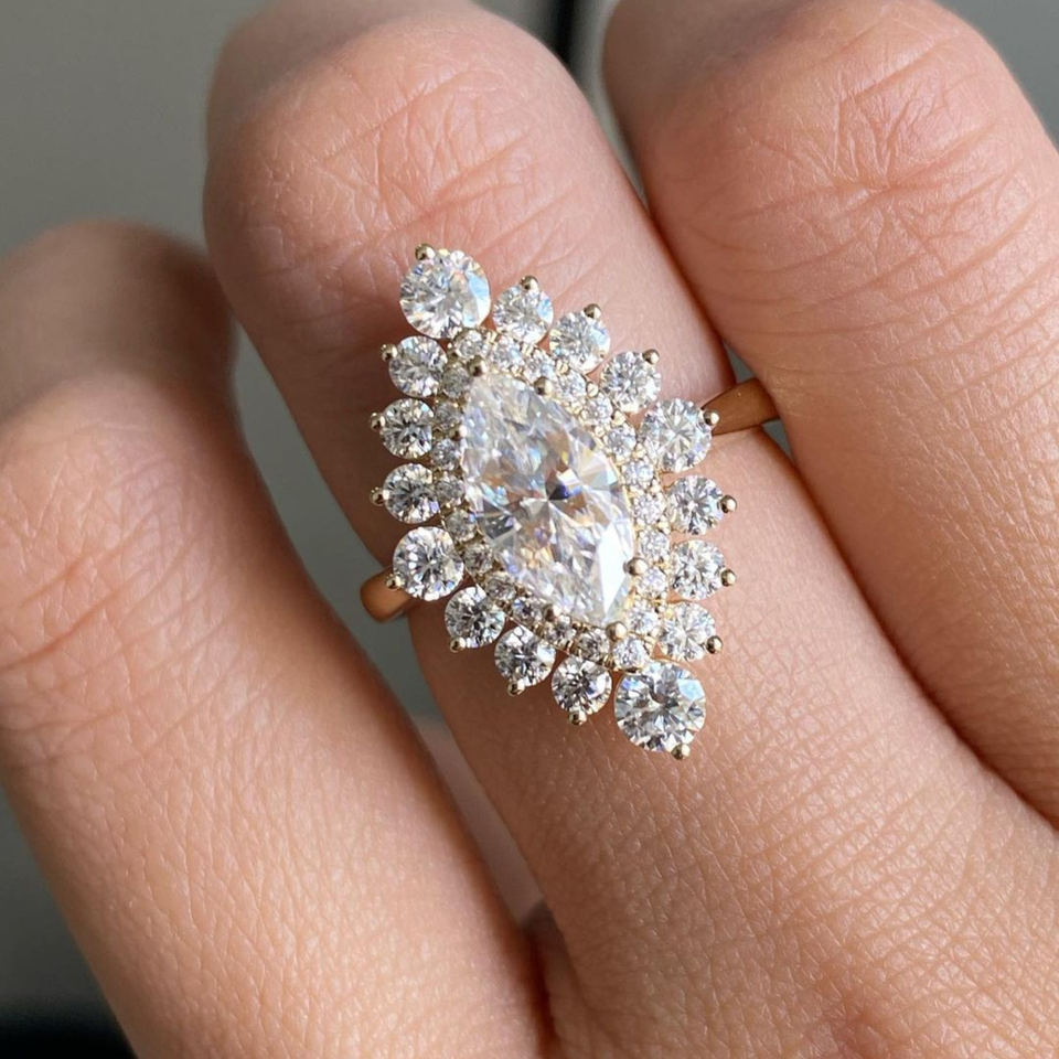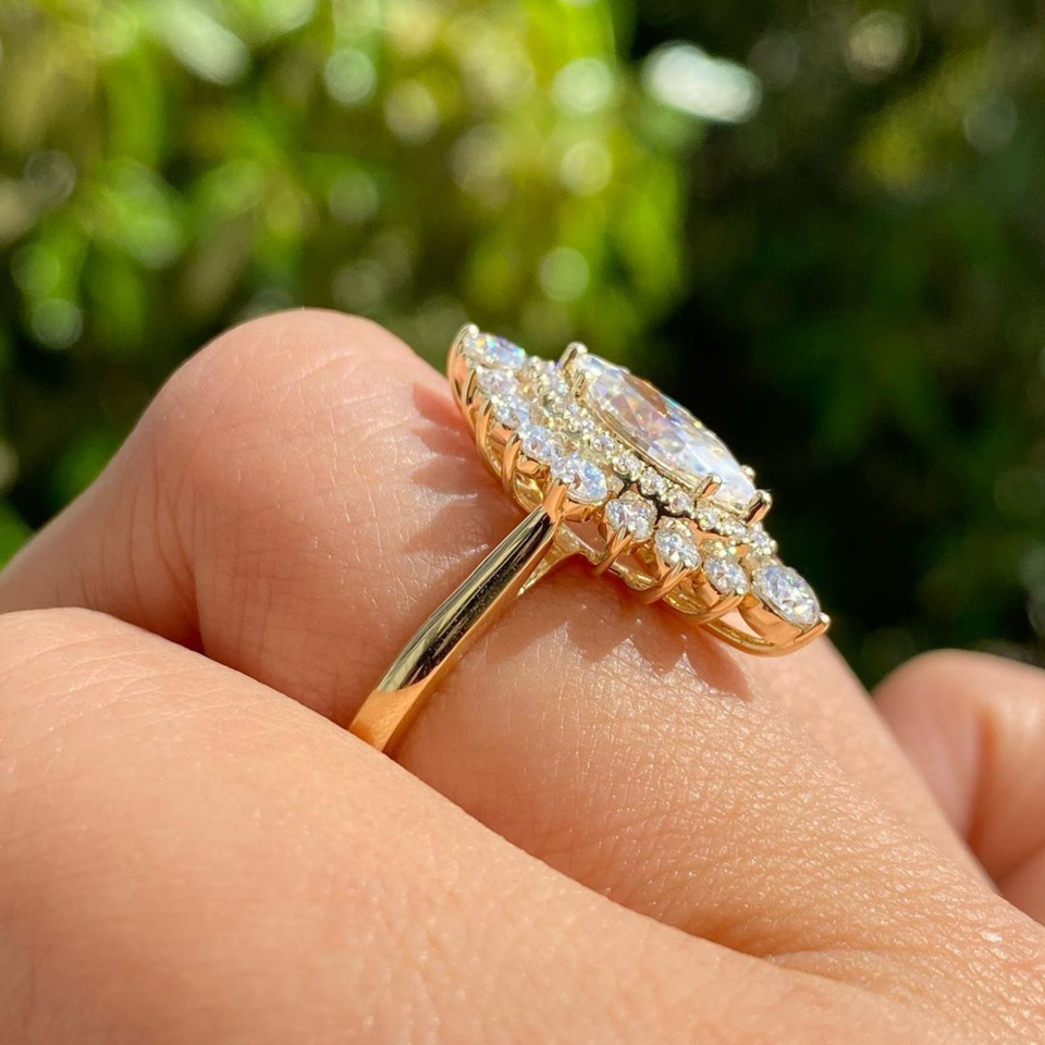Anillo de diamante de corte Marquesa cultivado en laboratorio de 4,30 quilates de alta calidad, anillo de boda de compromiso, joyería, anillo de oro amarillo de 14K, vermeil de eternidad