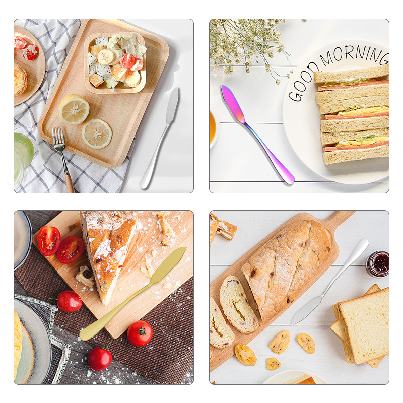 Cubiertos de acero inoxidable 410 de alta calidad, cubiertos dorados, cuchillo de queso mate, cuchillo de mantequilla, cubiertos para restaurante