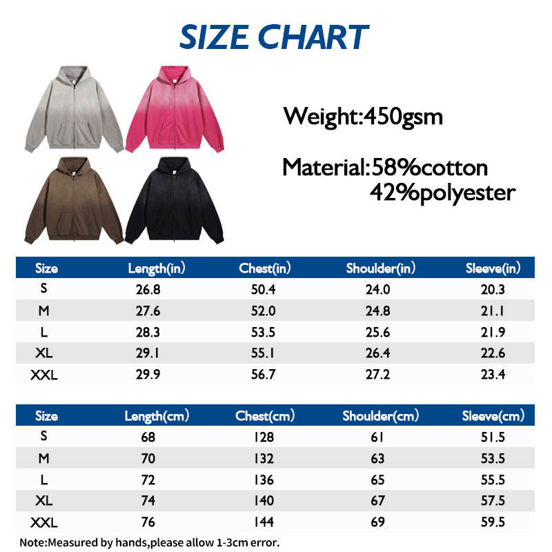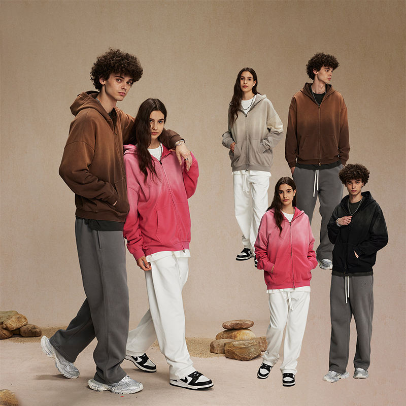 Alta calidad 450GSM Zip-Up Hoodie Hombres Retro Streetwear Oversized Gradient Acid Washed French Terry Custom Spray Dye Hoodies