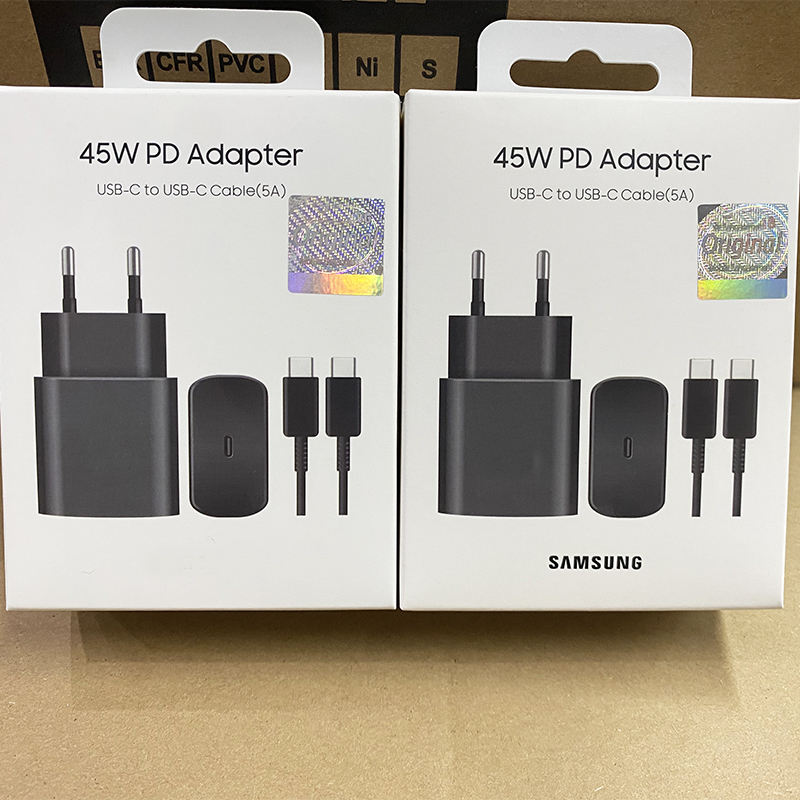 Adaptador de Corriente USB C de Alta Calidad de 45 W 4510, Carga Súper Rápida 2.0 con Cable USB-C a C de 1.8 M y 5 A para Samsung S24 S23