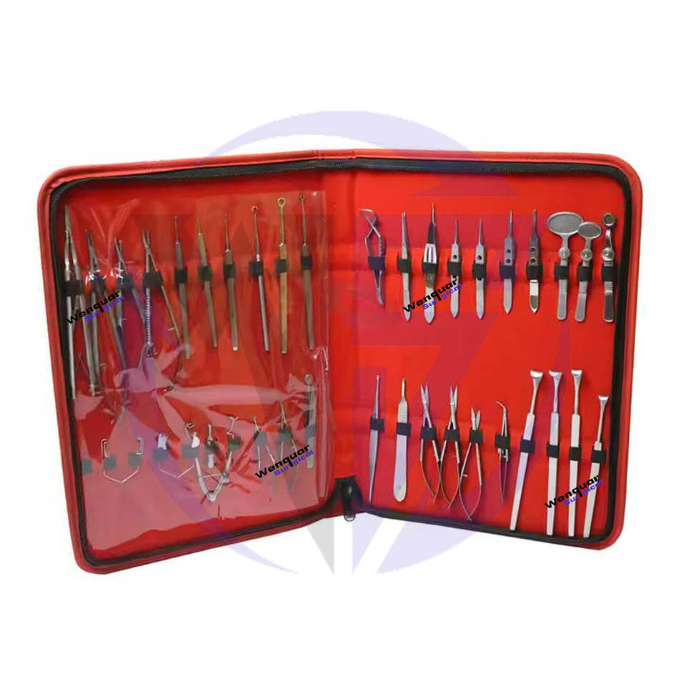 Especificación:Juego de 46 piezas de instrumentos quirúrgicos oftálmicos para microcirugía ocular.