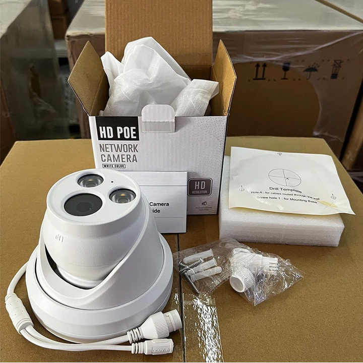 Cámara de Red Fija Tipo Torreta de Alta Calidad, 5 MP 8 MP, a Todo Color, con Detección de Personas y Vehículos por IA, Micrófono Integrado, Impermeable