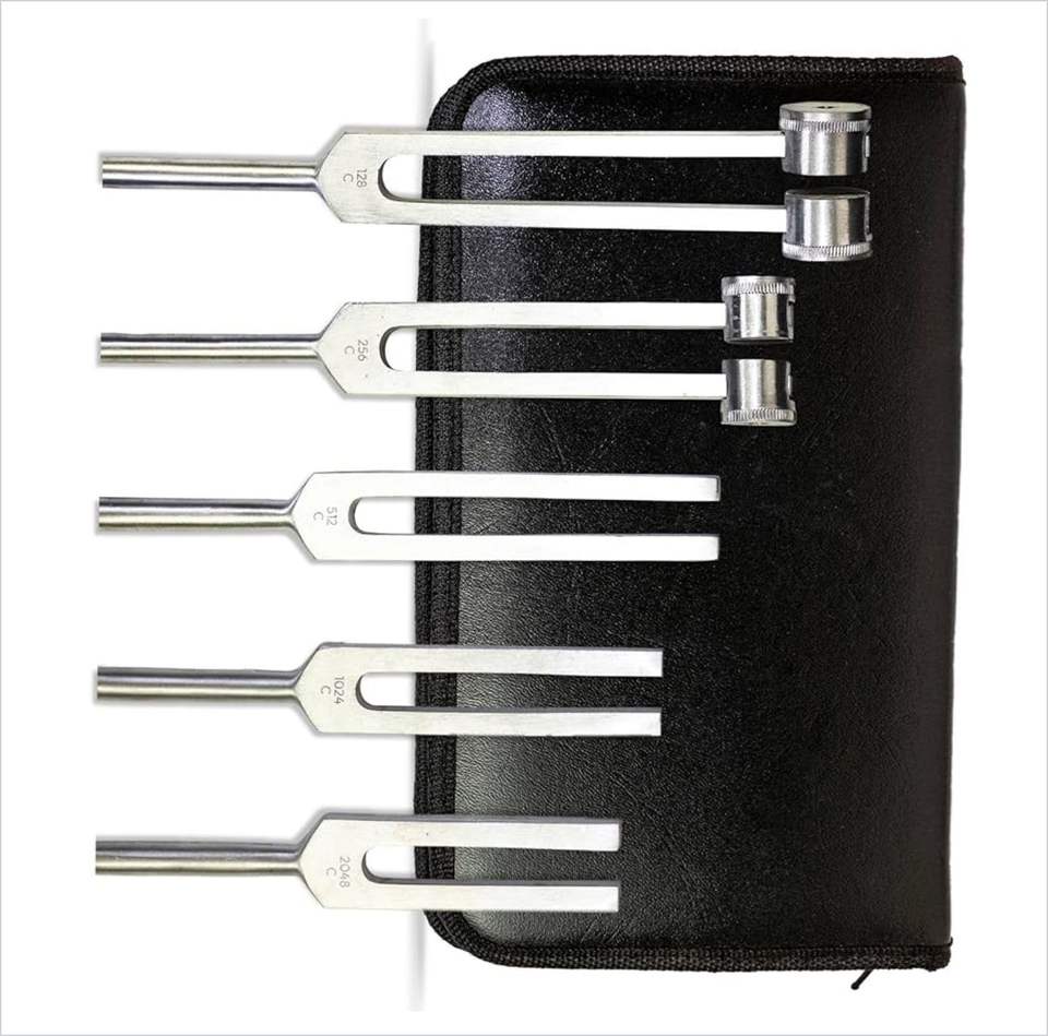 Juego de Instrumentos Médicos Reutilizables de Alta Calidad con 5 Diapasones de Acero Inoxidable, Frecuencias C128, C256, C512, C2048, C1024 para Terapia