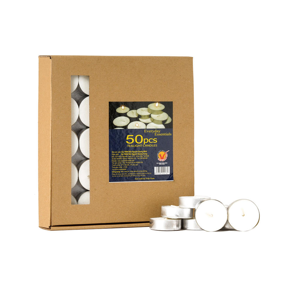 Packaging Description:50 Pressed Tealight Candles in Alu Cups / Packaged in Cardboard Boxes