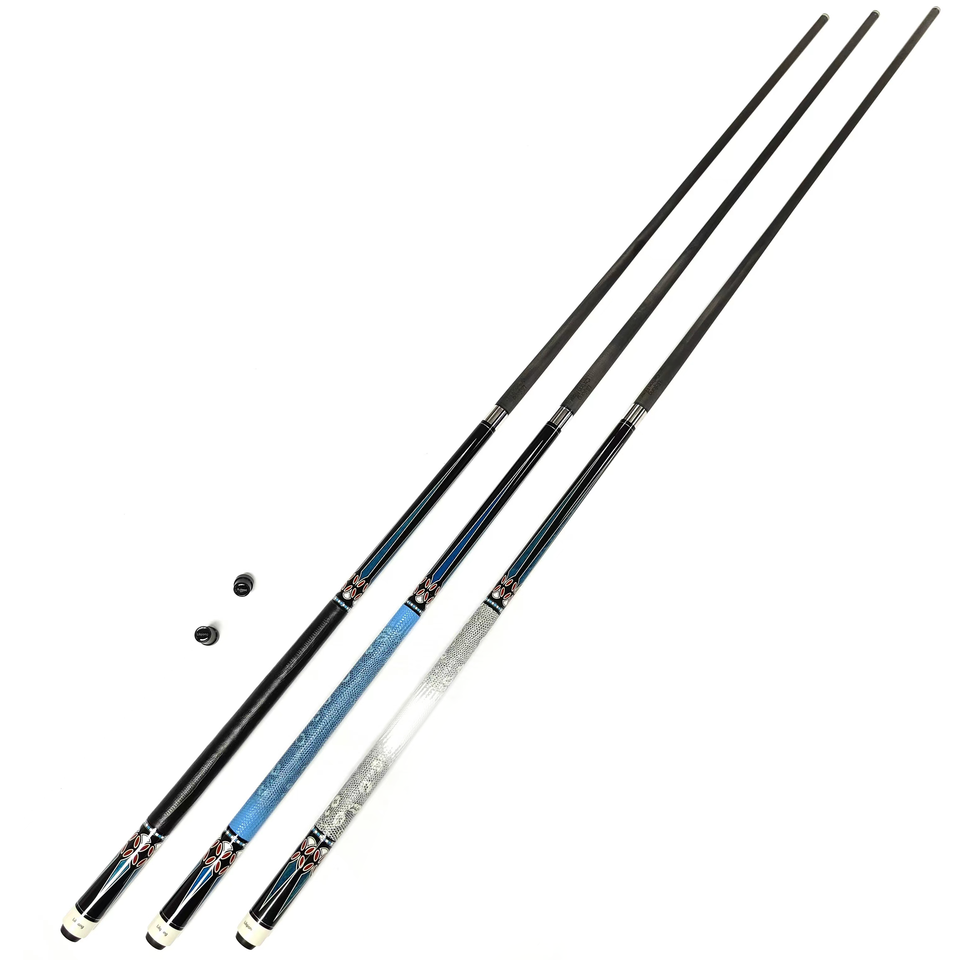 Taco de Billar VanQS con Punta de 13 mm, Empuñadura de Cuero Genuino Textura Piel de Lagarto de 3 Colores, Unión Uni-loc 1/2, Eje de Fibra de Carbono