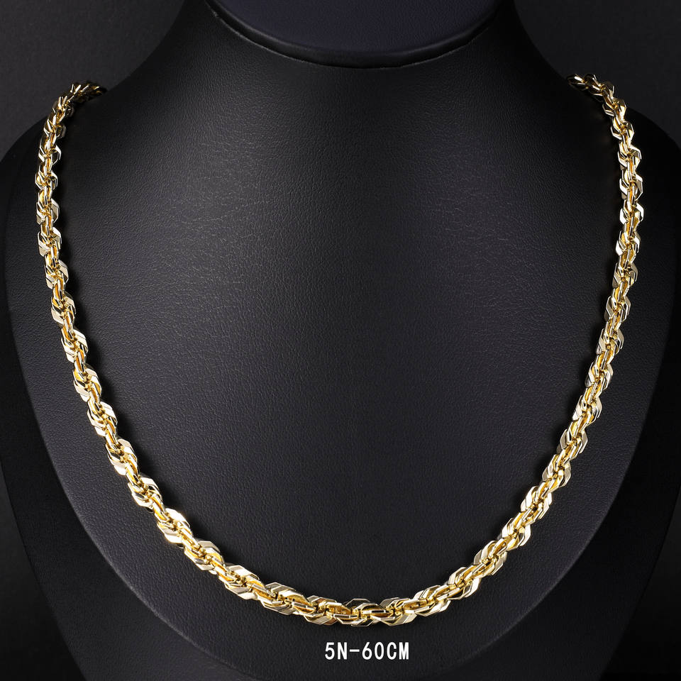 Collar de Cadena de Cuerda Trenzada 5N de Alta Calidad, Chapado en Oro de 14K, Collar de Acero Inoxidable que No se Desvanece, para Hombres y Mujeres, Joyería de Moda