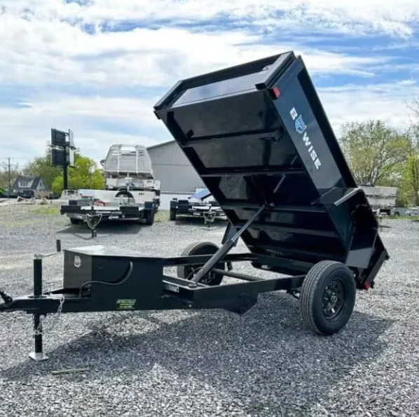 Remolque de descarga hidráulica 5x8 de alta calidad 24 "lados 5,200lb eje y frenos construcción de hierro para uso en tractores agrícolas