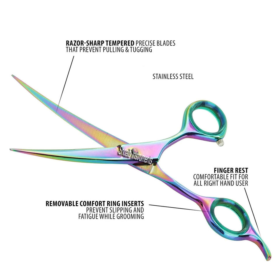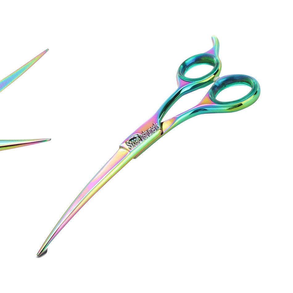 Nombre del producto:6,5 "arco iris curvado pet grooming tijeras perros gato groomer