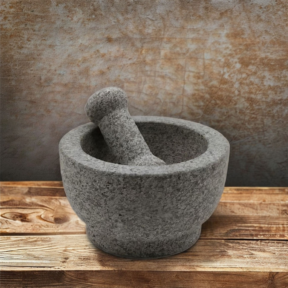 Molcajete de Granito de Alta Calidad de 6.5 Pulgadas con Mortero y Pilón, Ecológico y Sostenible, para Moler Hierbas y Especias