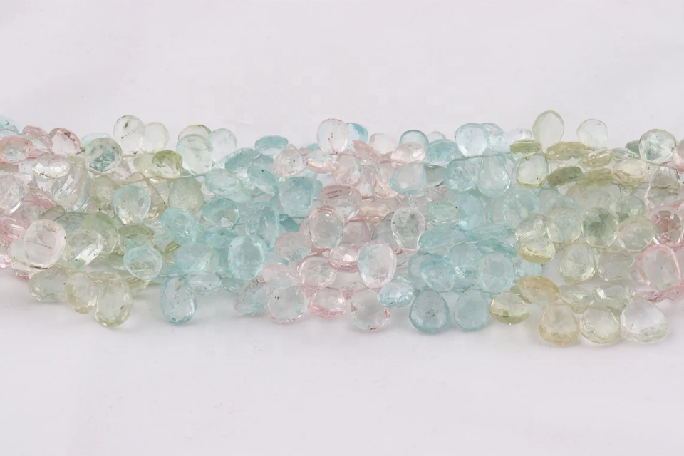 Nombre:Cuentas de Aguamarina Multicolor de Alta Calidad, Forma de Pera Facetada