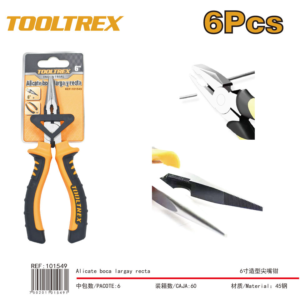 Alicates de Punta Fina de 6 Pulgadas Tooltrex, Acero al Carbono de Grado Industrial, Mango Naranja, Alicates Combinados
