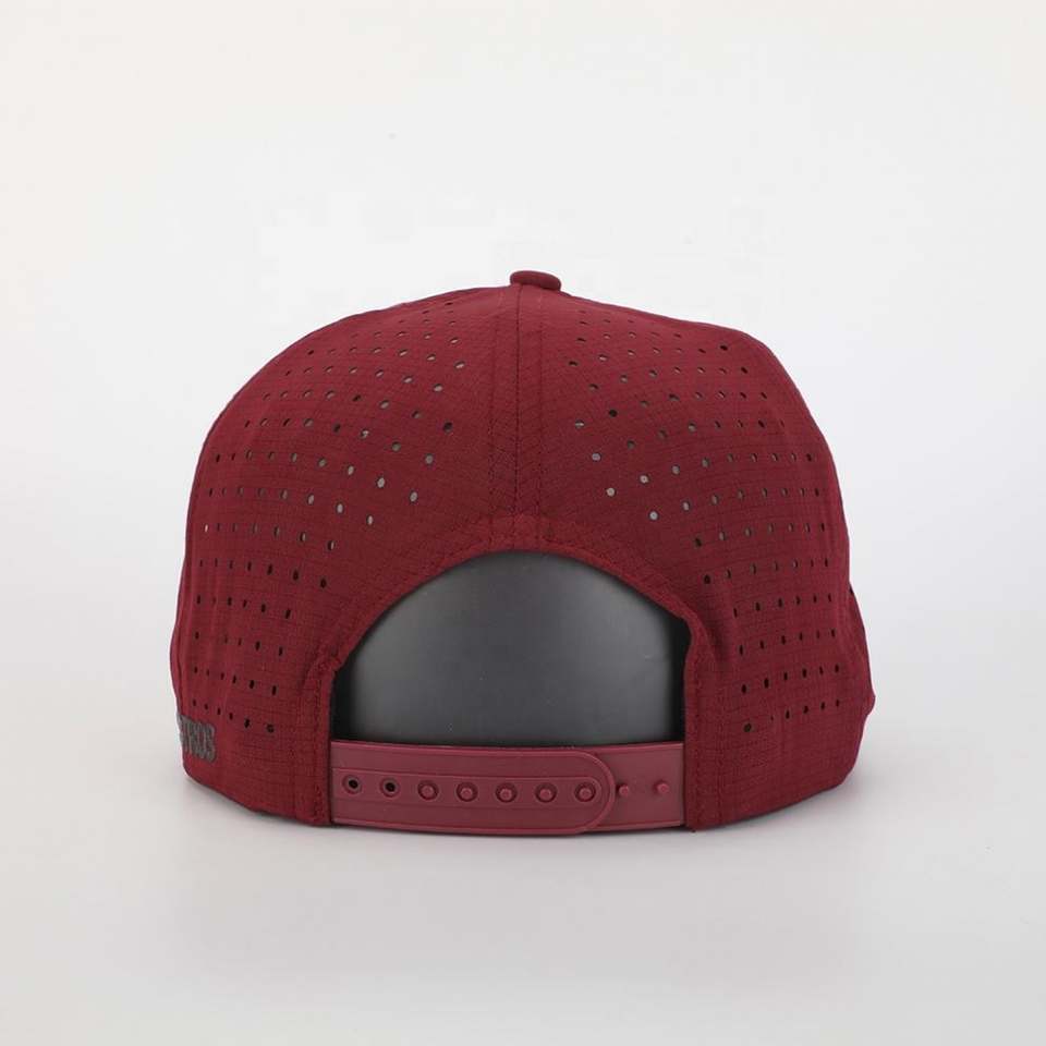 Gorra Deportiva de Alto Rendimiento con Diseño de 6 Paneles, Logotipo Personalizado, Visera Plana de Poliéster, Venta al por Mayor, Orificios Cortados con Láser, Estilo Vintage con Cuerda