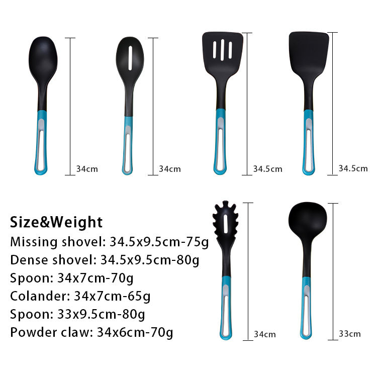 Juego de Utensilios de Cocina de Alta Calidad de 6 Piezas con Mangos de Nailon Plástico para Utensilios Antiadherentes para Cocinar en la Cocina