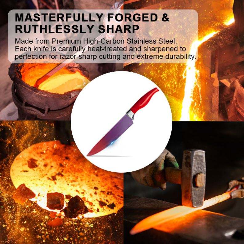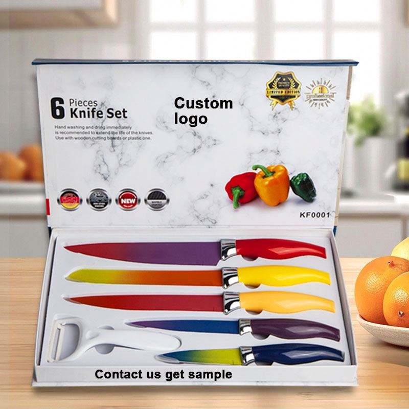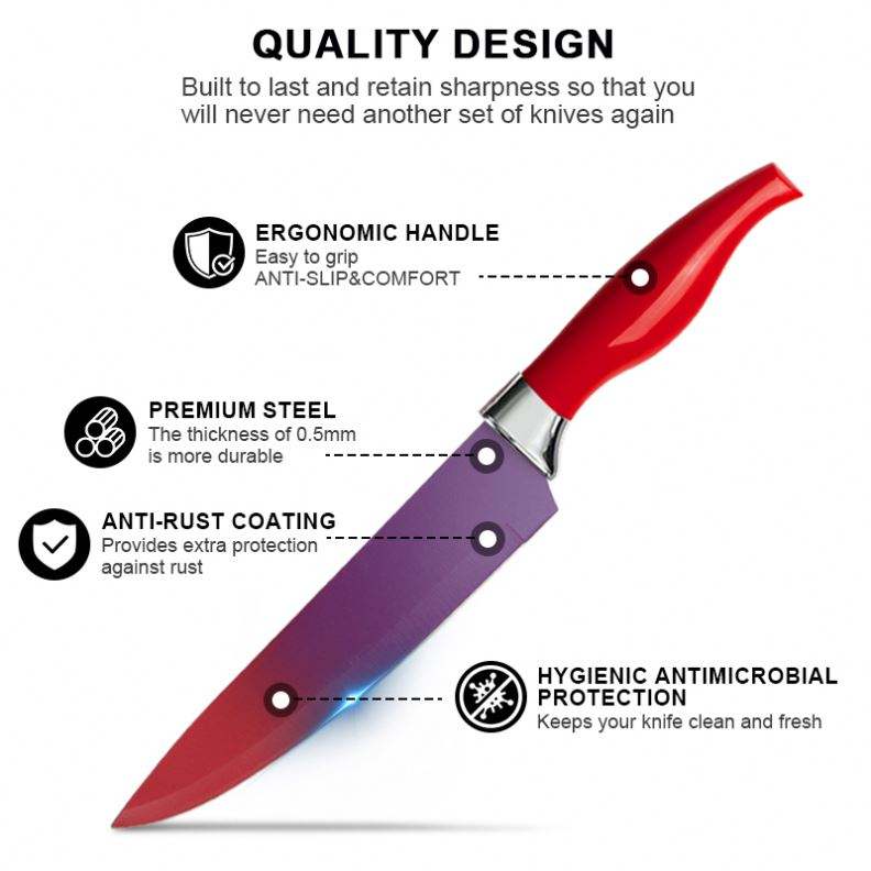 Juego de Cuchillos de Cocina de Alta Calidad de 6 Piezas, Coloridos, para Verduras y Frutas, Aptos para Lavavajillas, Cuchillos de Chef de 8 Pulgadas con Caja de Regalo