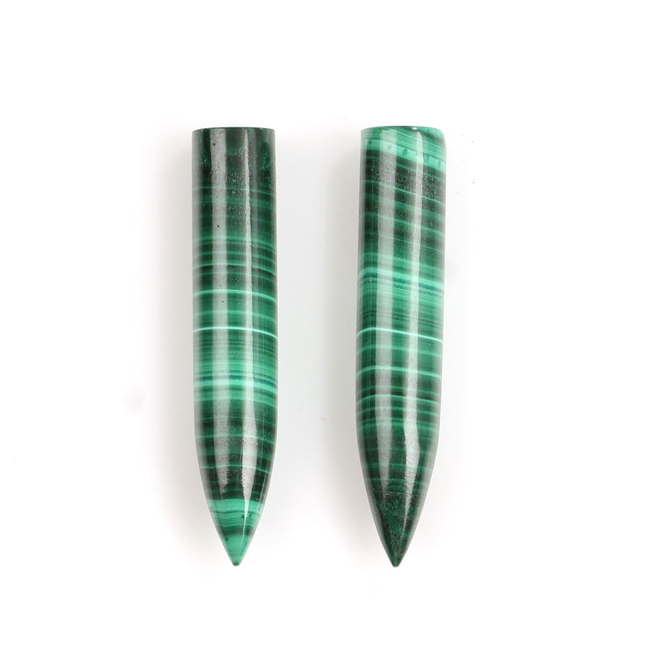 Nombre del producto:Natural 6x30mm malaquita bala larga forma briolette suelta piedras preciosas