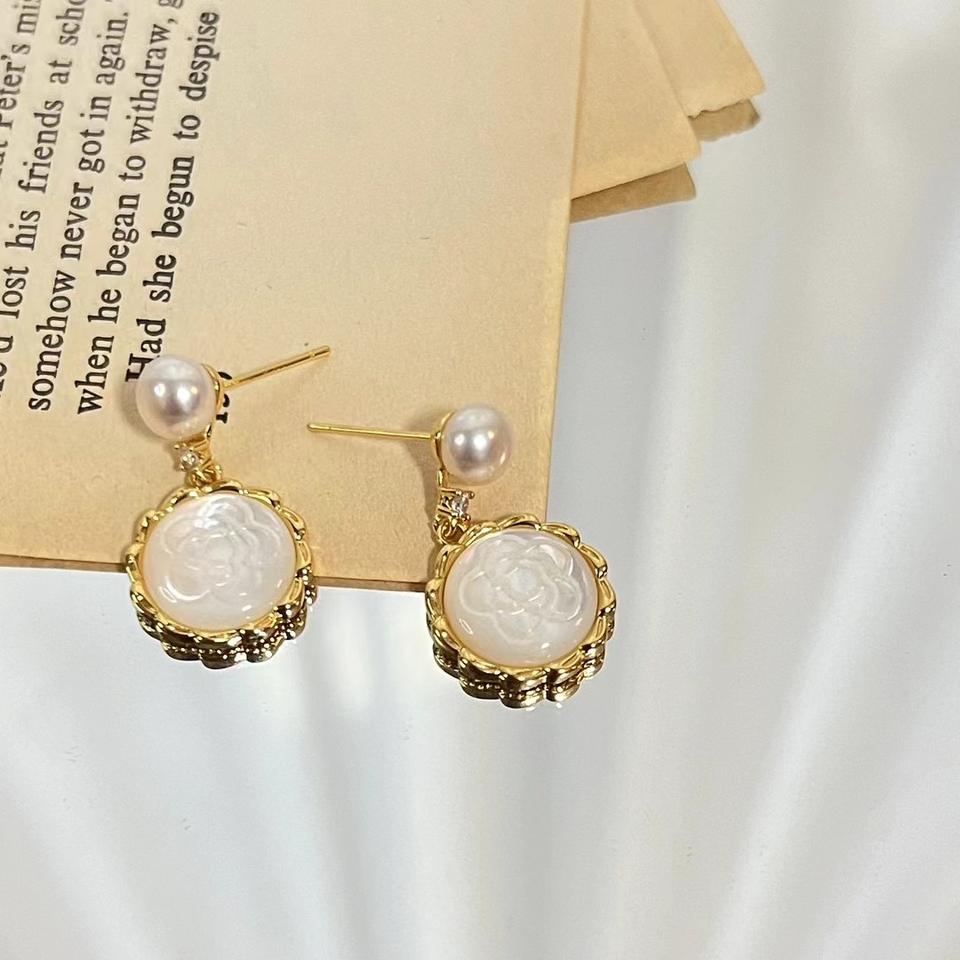 Pendientes de Perlas de Agua Dulce de Alta Calidad de 7-8 mm, con Incrustaciones de Concha de Peonía y Perla, Diseño de Flor