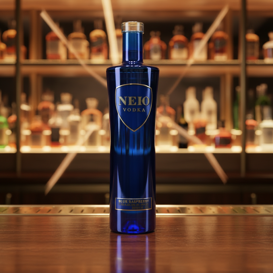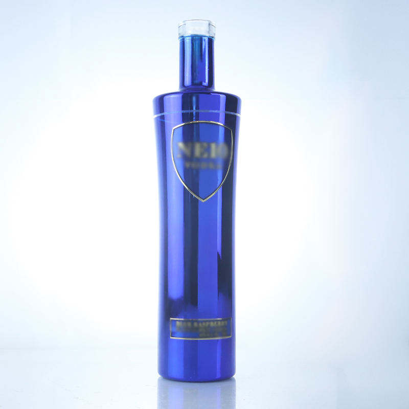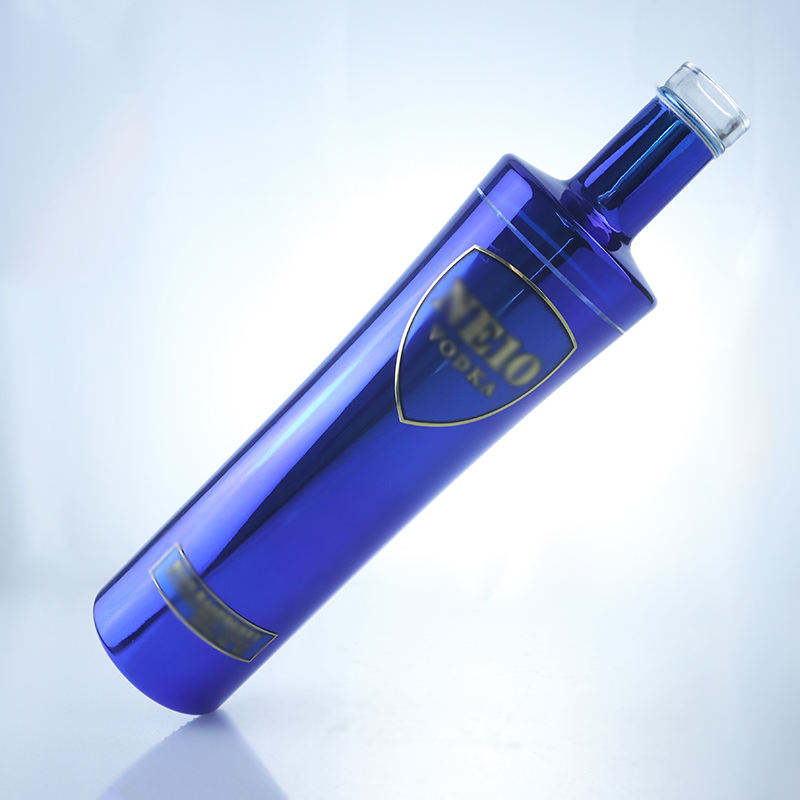 Botella de Vidrio Azul Pulverizado de Alta Calidad de 700ml 500ml con Impresión de Calcomanía Dorada y Acabado de Corcho para Whisky, Ginebra y Bebidas Energéticas Premium