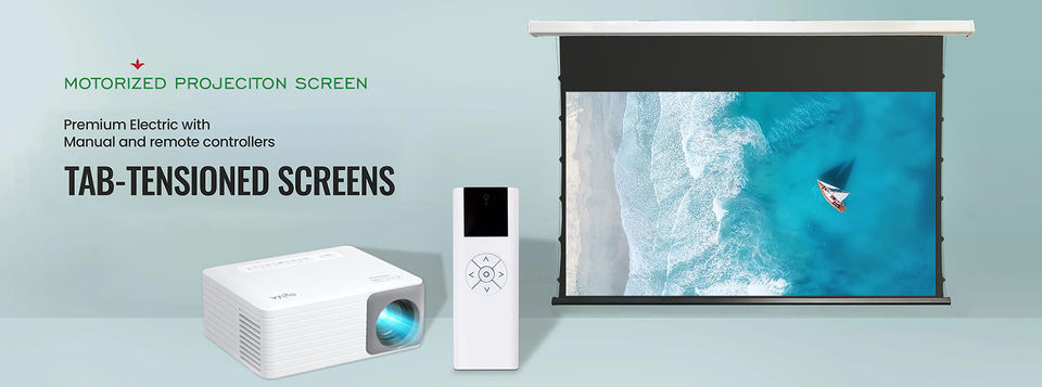 Pantalla de Proyección Motorizada de PVC de Alta Calidad de 72-150 Pulgadas 16:9 con Control Remoto para Proyecciones de Películas en Paredes y Techos del Hogar
