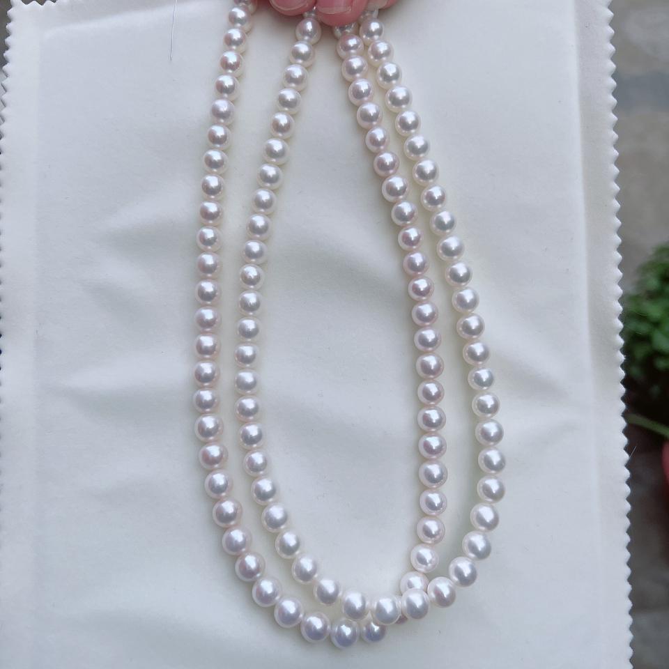 Collar de Perlas de Agua Dulce de Alta Calidad de 8-9 mm, Cadena de Suéter AK Translúcida con Luz Fría Intensa, Extremadamente Fina