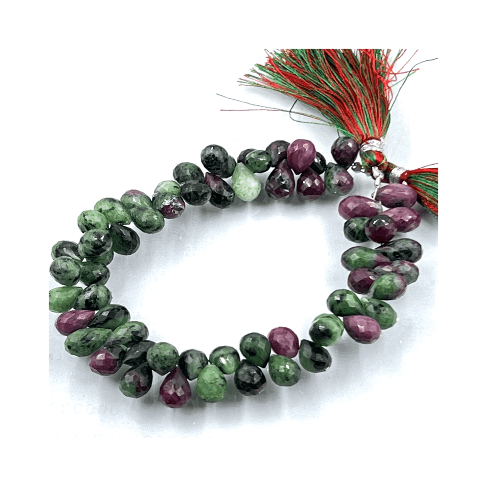 Cuentas de piedra Briolette de lágrima de zoisita de rubí Natural de 8 pulgadas de alta calidad, cuentas de piedras preciosas sueltas de 5-6mm para la fabricación de joyas