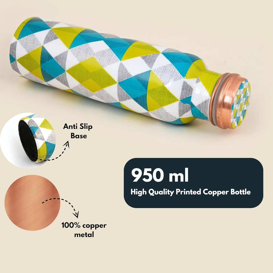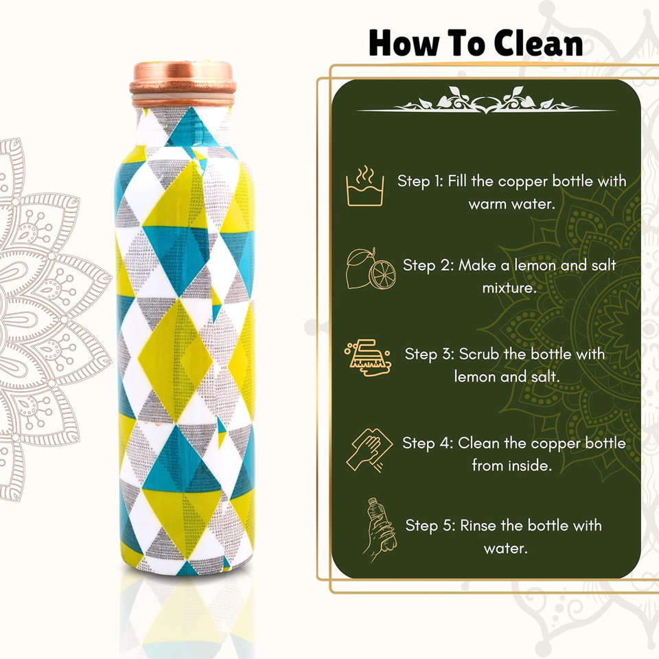 Botella de Agua de Cobre Puro de Alta Calidad de 800 ml, Diseño con Logotipo Impreso, Diferentes Estilos, Empaque de Vidrio Premium, Ideal para Campamentos y Fiestas, Hecho en India