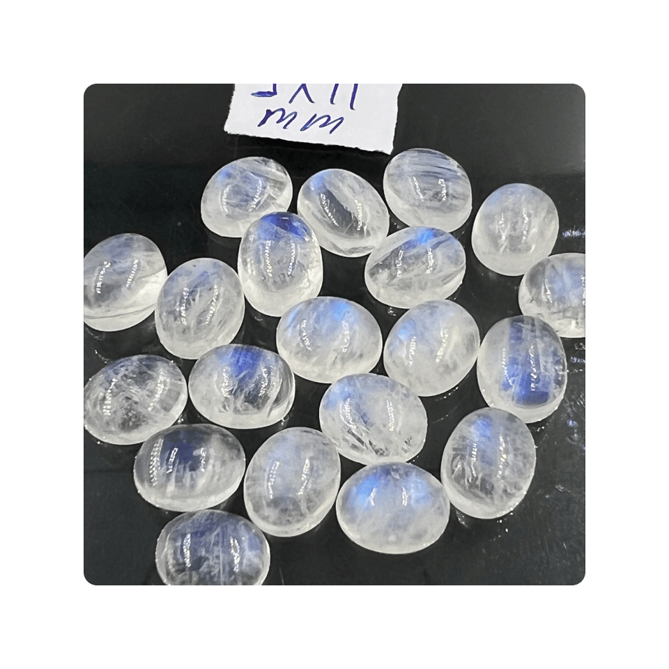 Alta calidad 8mm Fuego Azul Arco Iris piedra lunar hermoso cabujón ovalado facetado 9x11mm patrón de piedras preciosas calibradas fabricación de joyas