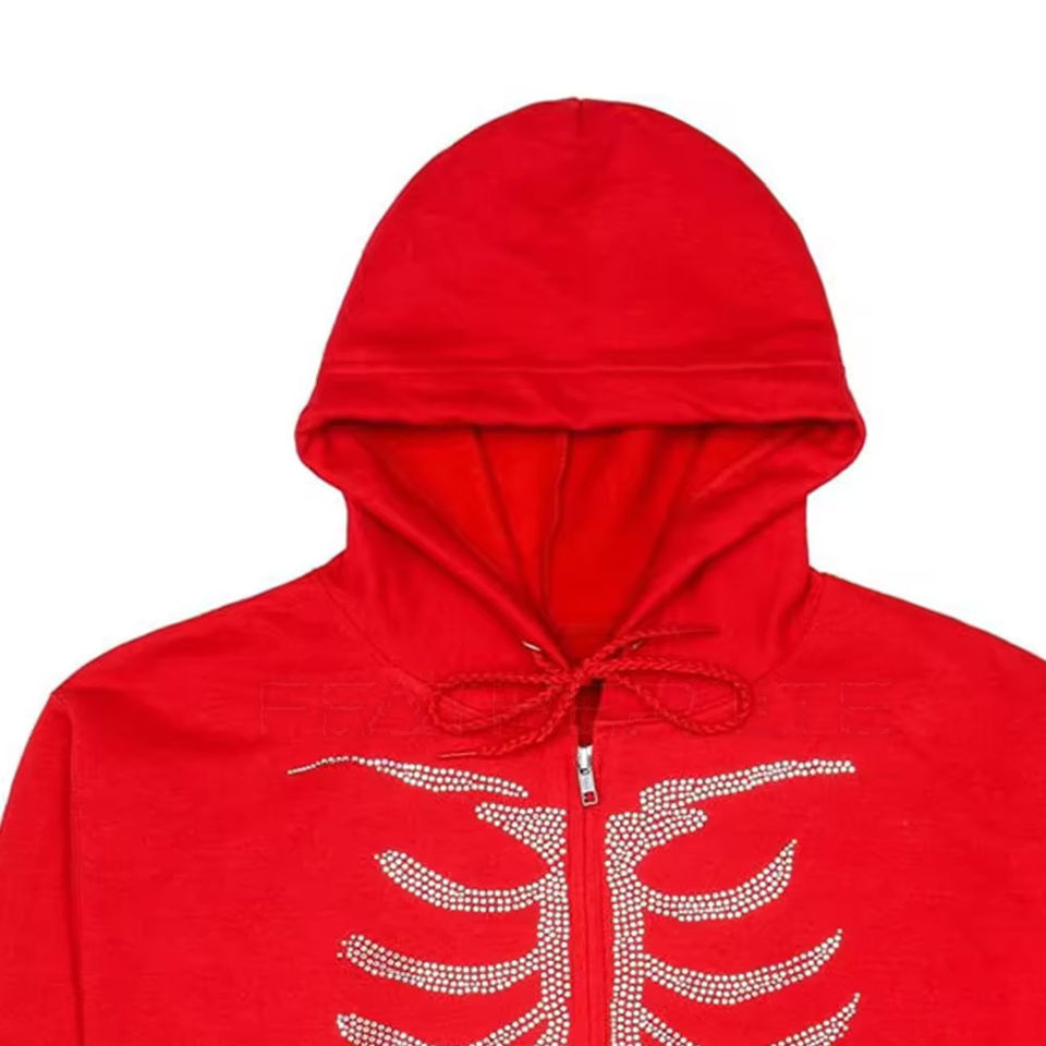 Sudadera con capucha de alta calidad con cremallera completa y pedrería de 8mm, diseño de calavera personalizado, logotipo personalizado, estilo para parejas, tela de color personalizable