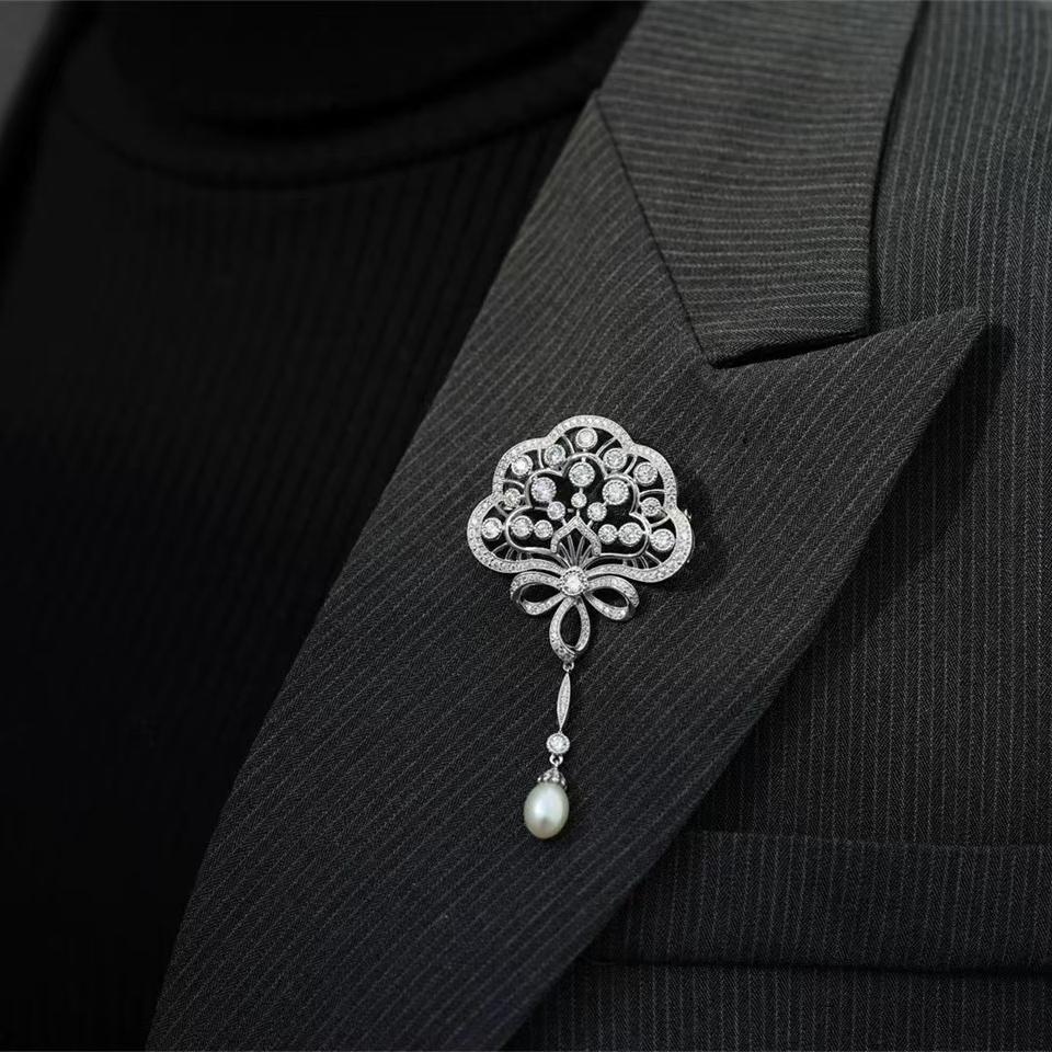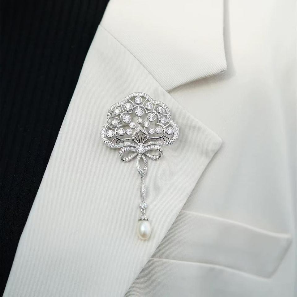 Broche de Perlas de Agua Dulce de Alta Calidad, Forma de Arroz de 9-10 mm, Diseño de Flor de Pavo Real, con Luz Intensa y Ligeras Imperfecciones