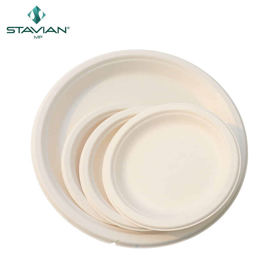 Plato redondo desechable de 9 pulgadas de alta calidad, vajilla ecológica y biodegradable más vendida en Vietnam