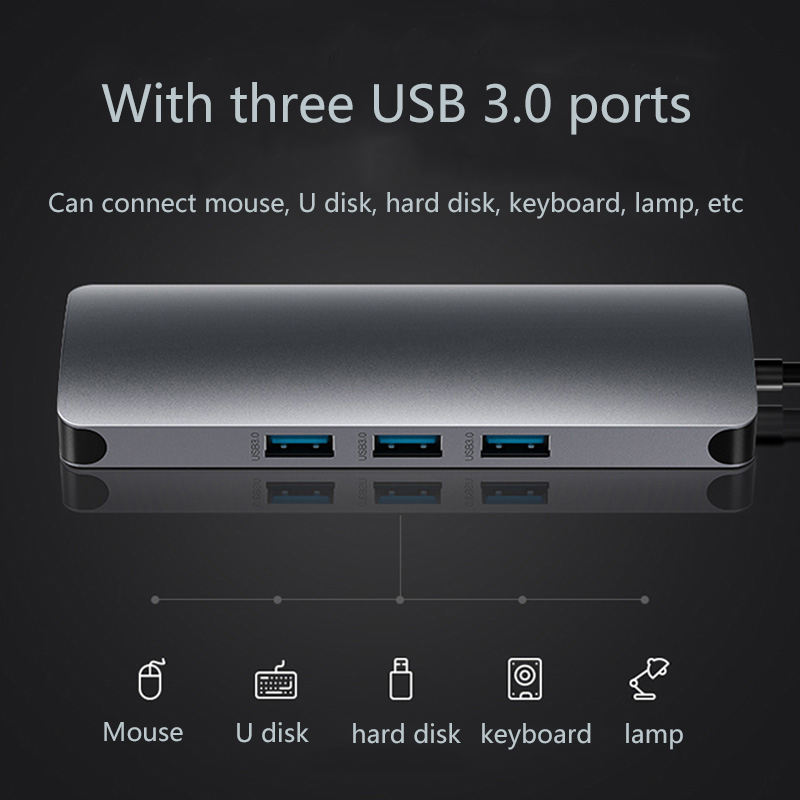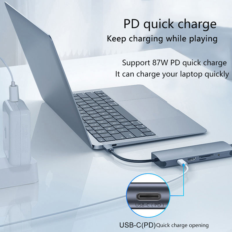 Hub USB C 9 en 1 de Alta Calidad, Adaptador Tipo C, Estación de Acoplamiento 4K para HDMI, RJ45, Audio de 3.5mm para Accesorios de Computadora