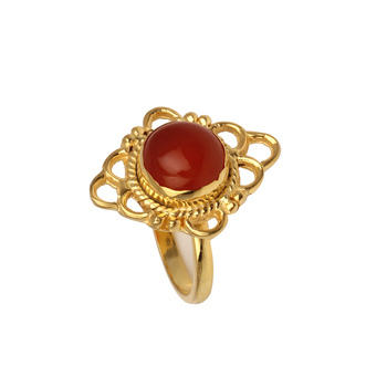 Product Name:Natural Orange Chalcedony Sterling Silver Gold Plated Ring