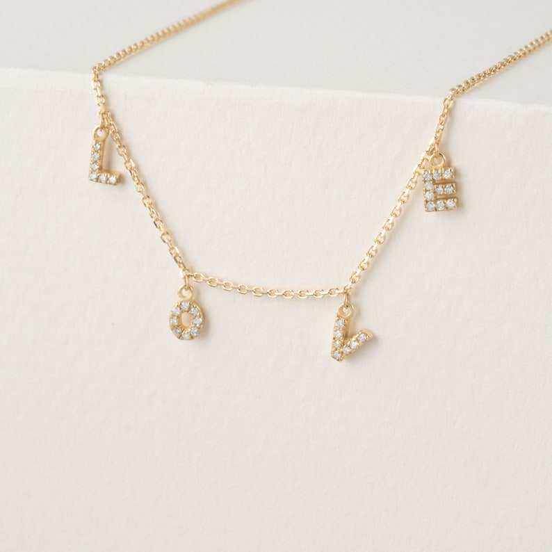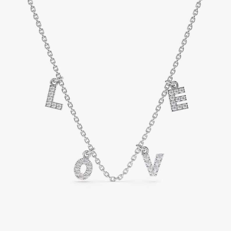 Collar con Letra LOVE de Oro Sólido 9K de Alta Calidad con Diamantes Naturales, 32 Diamantes, 0.12 Quilates, Hecho a Medida, Amuleto Romántico de Lujo