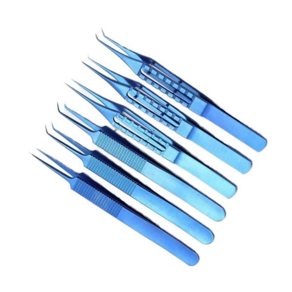 Juego de microfórceps de titanio A + de alta calidad, instrumentos quirúrgicos manuales con punta fina recta y curva, instrumentos OldMed