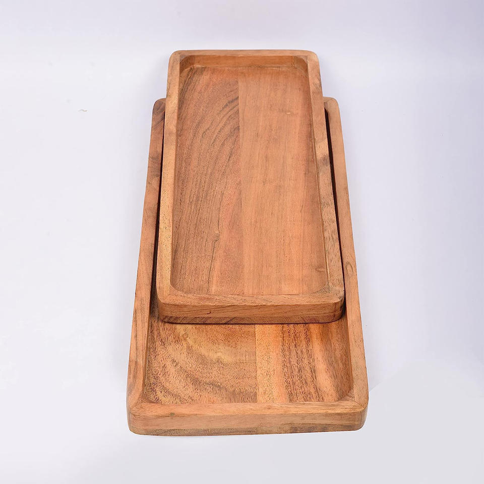 Nombre del producto:Bandeja de servicio rectangular de madera de acacia L Juego de 2