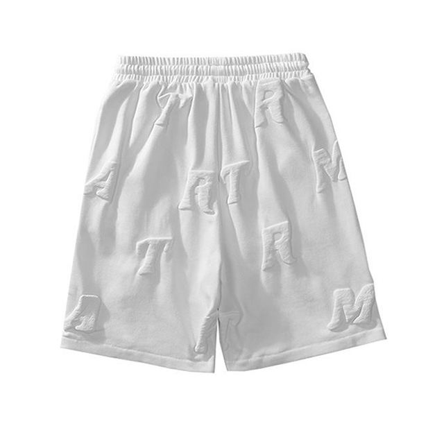 Pantalones cortos con estampado de soplo lavado con ácido de alta calidad para hombre, pantalones cortos de felpa francesa de algodón 100%, pantalones cortos para correr con bordado y cordón