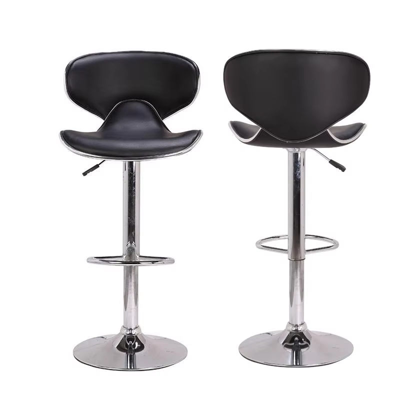 Taburete de Bar de Pu barato ajustable de alta calidad, silla de Bar de cuero negro ajustable para cocina con respaldo