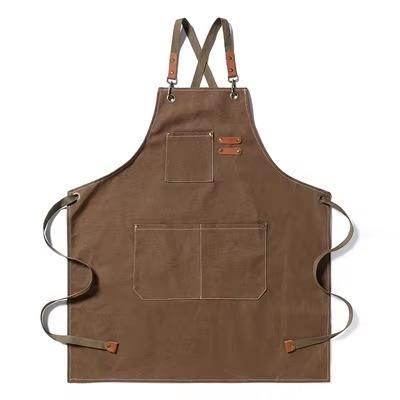 Delantal de Lona de Algodón Ajustable de Alta Calidad con Elegantes Tirantes Cruzados para Floristería, Jardinería, Restaurante, Bar, Uniformes