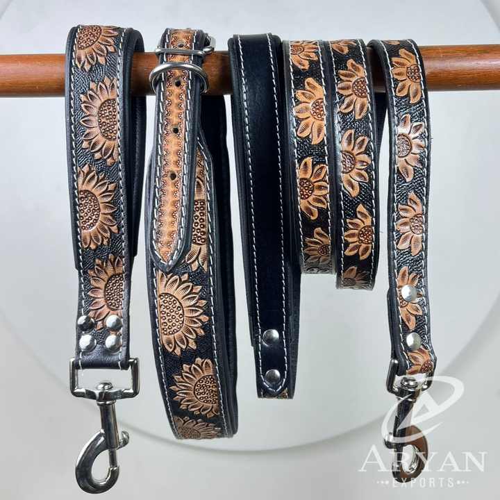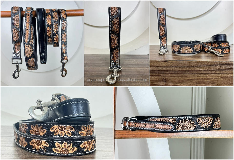 Nombre del producto:Conjunto de correa de perro de cuero genuino a mano